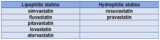 - Climent, E.; Benaiges, D.; Pedro-Botet, J. Hydrophilic or Lipophilic Statins? Front. Cardiovasc. Med. 2021, 8, 687585. [Google Scholar] [CrossRef]