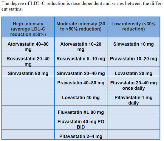 - Almeida, S.O.; Budoff, M. Effect of statins on atherosclerotic plaque. Trends Cardiovasc. Med. 2019, 29, 451–455. [Google Scholar] [CrossRef]