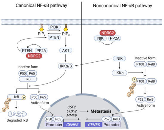 - Ichikawa, T.; Nakahata, S.; Fujii, M.; Iha, H.; Morishita, K. Loss of NDRG2 enhanced activation of the NF-kappaB pathway by PTEN and NIK phosphorylation for ATL and other cancer development. Sci. Rep. 2015, 5, 12841. [Google Scholar] [CrossRef]