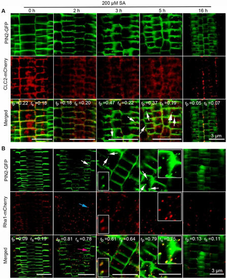 - Ke, M.; Ma, Z.; Wang, D.; Sun, Y.; Wen, C.; Huang, D.; Chen, Z.; Yang, L.; Tan, S.; Li, R.; et al. Salicylic acid regulates PIN2 auxin transporter hyperclustering and root gravitropic growth via Remorin-dependent lipid nanodomain organisation in Arabidopsis thaliana. New Phytol. 2021, 229, 963–978. [Google Scholar] [CrossRef] [PubMed]