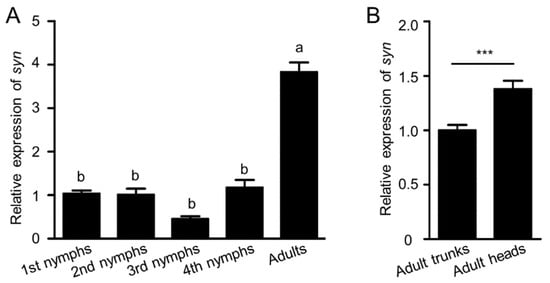 2.2. Expression Profiles of Synapsin at Different Stages and Tissues