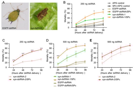 2.3. Knockdown of Synapsin Led to Death of the Melon Aphid