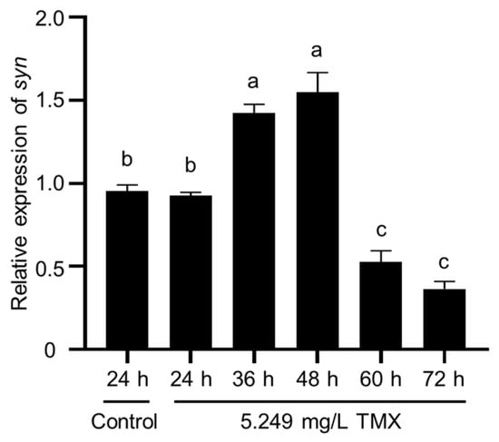 2.5. The Upregulation of Synapsin as an Acute Response to Thiamethoxam