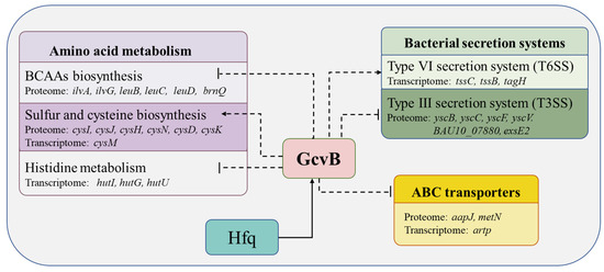 All RNA sequencing data are deposited in the GenBank (wildtype biosample: SAMN29675353, SRA: SRR20124473-SRR20124475; gcvB mutant strain biosample: SAMN29675354, SRA: SRR20124470-SRR20124472) (accessed on 14 July 2022). All proteome data are deposited in iProX (Integrated Proteome Resources) database (https://www.iprox.cn/page/home.html, accessed on 19 July 2022), the accession ID is IPX0004724001. The other data presented in this study are available in the article.