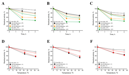 4.3. Determination of Antimicrobial Effect of Bacitracin and Its Combination with His6-OPH