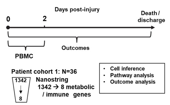 - Xiao, W.; Mindrinos, M.N.; Seok, J.; Cuschieri, J.; Cuenca, A.G.; Gao, H.; Hayden, D.L.; Hennessy, L.; Moore, E.E.; Minei, J.P.; et al. A genomic storm in critically injured humans. J. Exp. Med. 2011, 208, 2581–2590. [Google Scholar] [CrossRef] [PubMed]
