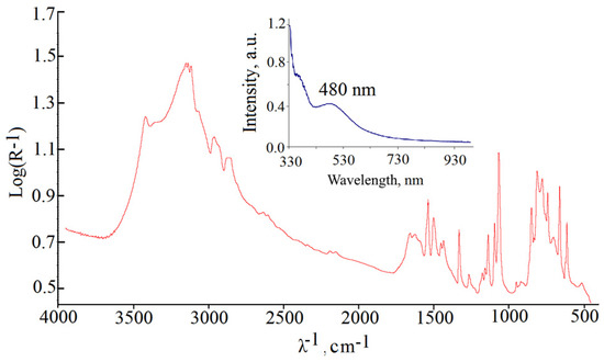 The electronic absorption spectroscopy of the bright pink solutions of compounds I and II showed a broad wave with a peak of 480 ± 10 nm (Figure 10, inset), which is typical for Tc(V) compounds. Otherwise, the UV-Vis spectroscopy was uninformative.