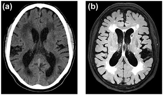 - Ferguson, K.J.; Cvoro, V.; MacLullich, A.M.J.; Shenkin, S.D.; Sandercock, P.A.G.; Sakka, E.; Wardlaw, J.M. Visual Rating Scales of White Matter Hyperintensities and Atrophy: Comparison of Computed Tomography and Magnetic Resonance Imaging. J. Stroke Cerebrovasc. Dis. 2018, 27, 1815–1821. [Google Scholar] [CrossRef]