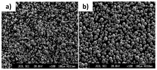 The morphology of the elemental powders (based on the emissions received from the secondary electrons) in their original purchased conditions was characterized by a JXA-8100 electron probe microanalyzer (EPMA) machine equipped with an energy dispersive X-ray spectrometer (EDS). The values of the two different powder mixtures’ particle diameters at 10%, 50% and 90% in the cumulative distribution were determined using a laser diffraction particle sizing measurement machine (Malvern Mastersizer 3000, Malvern Panalytical, Malvern, United Kingdom). Hall flowability, apparent density, and tap density of the powder mixtures were investigated by ASTM B213, ASTM B964, ASTM B212, and ASTM B527 standards, respectively [48]. Note that tests concerning particle size distribution, Hall flowability, Carney flowability, apparent density, and tap density were performed on three different powder batches and the average results are reported.