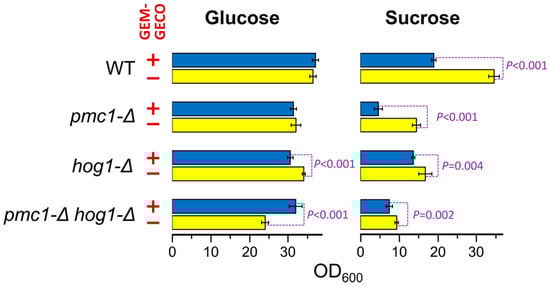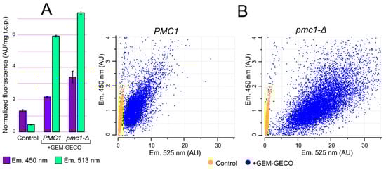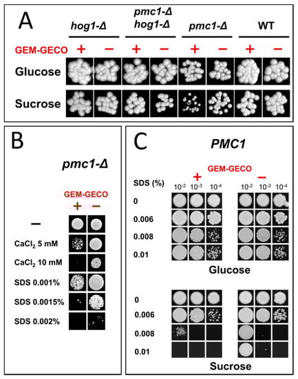2.1. GEM-GECO Expression Affects Cell Growth in a Pmc1-Dependent Manner