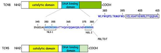 - Lorenzen, J.A.; Dadabay, C.Y.; Fischer, E.H. COOH-terminal sequence motifs target the T cell protein tyrosine phosphatase to the ER and nucleus. J. Cell Biol. 1995, 131, 631–643. [Google Scholar] [CrossRef]