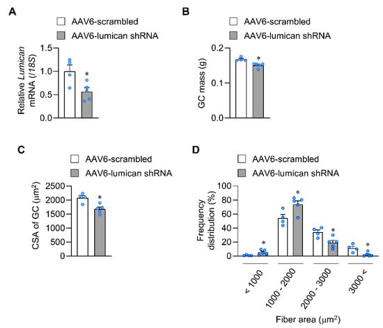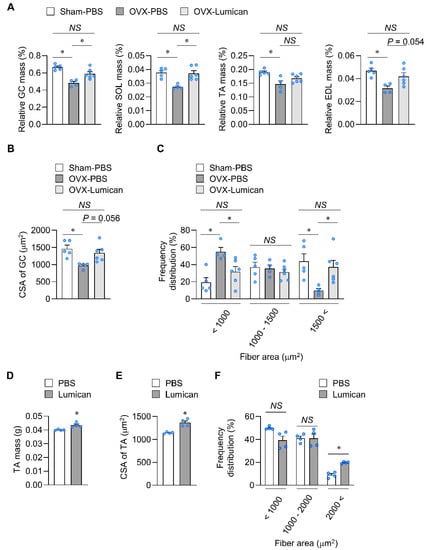 2.3. Lack of Lumican Contributes to Muscle Atrophy in Exercised Mice