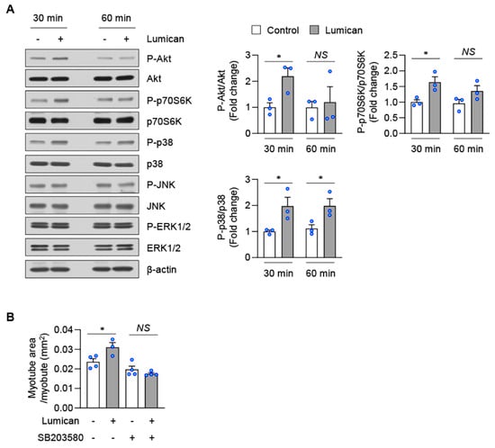 2.4. Lumican Stimulates Myogenesis by Activating the p38 Mitogen-Activated Protein Kinase (MAPK) Signaling Pathway