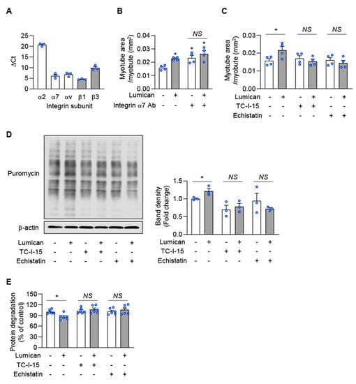 2.5. Integrins Are Putative Lumican Receptors in Muscle Cells