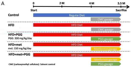 The human hepatocarcinoma cell lines (Mahlavu and HepG2) were obtained from Food Industry Research and Development Institute (Hsinchu, Taiwan). Control chow diet and HFD were purchased from Bio-Cando Incorporation, Taiwan. PGG was obtained as described [24]. Metformin was purchased from BioVision (Waltham, MA, USA).