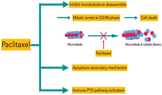 There is compelling evidence proving that paclitaxel (PTX) can kill cancer cells through induction of apoptosis. This is predominantly based on paclitaxel’s combination with microtubules to affect microtubule stabilization. As a result, consequent arrest of the cell cycle at the mitotic phase can be determined as paclitaxel-induced cytotoxicity [12].
