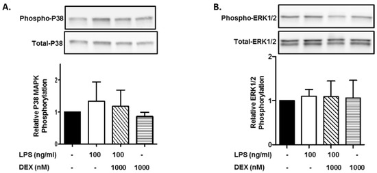 2.2. Effect of DEX on LPS-Induced p38 MAPK and ERK1/2 Activation