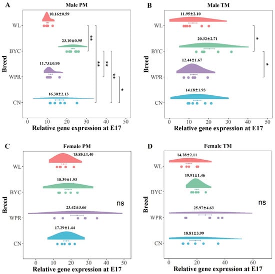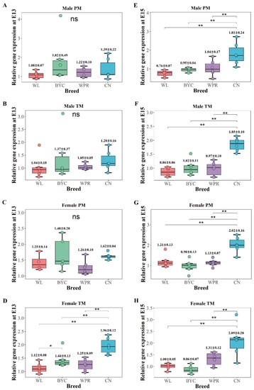Gu, S.; Wen, C.; Li, J.; Liu, H.; Huang, Q.; Zheng, J.; Sun, C.; Yang, N. Temporal Expression of Myogenic Regulatory Genes in Different Chicken Breeds during Embryonic Development. Int. J. Mol. Sci. 2022, 23, 10115. https://doi.org/10.3390/ijms231710115