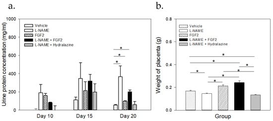 Martinez-Fierro, M.L.; Garza-Veloz, I.; Castañeda-Lopez, M.E.; Wasike, D.; Castruita-De la Rosa, C.; Rodriguez-Sanchez, I.P.; Delgado-Enciso, I.; Flores-Mendoza, J. Evaluation of the Effect of the Fibroblast Growth Factor Type 2 (FGF-2) Administration on Placental Gene Expression in a Murine Model of Preeclampsia Induced by L-NAME. Int. J. Mol. Sci. 2022, 23, 10129. https://doi.org/10.3390/ijms231710129