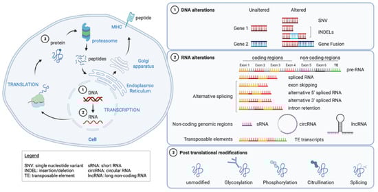 Sources of neoantigens (created with Biorender.com (accessed on 22 August 2022)).