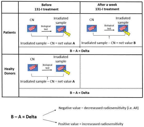 Chicago/Turabian StyleDini, Valentina, Massimo Salvatori, Mauro Belli, Maria Elena Lago, Alessandra Nosdeo, Donatella Pia Dambra, Luisa Lo Conte, Ilaria Pecchia, and Alessandro Giordano. 2022. "Changes in Radiosensitivity to Gamma-Rays of Lymphocytes from Hyperthyroid Patients Treated with I-131" International Journal of Molecular Sciences 23, no. 17: 10156. https://doi.org/10.3390/ijms231710156