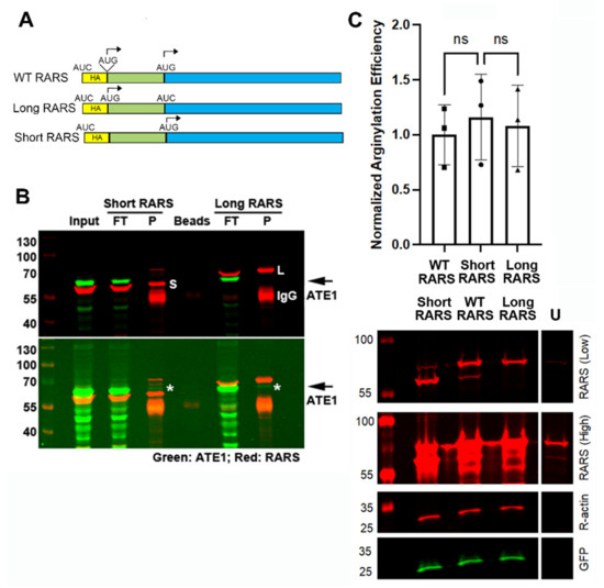 2.3. ATE1 Can Interact with the Long and Short RARS, but Overexpression of RARS Does Not Facilitate Arginylation