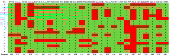 | No. | F36:PO | L47:Ak | S76:HD | S79:HD | P87:HA | P87:Ak | V88:Ak | H89:HD | H89:PO | M107:Ak | L110:Ak |