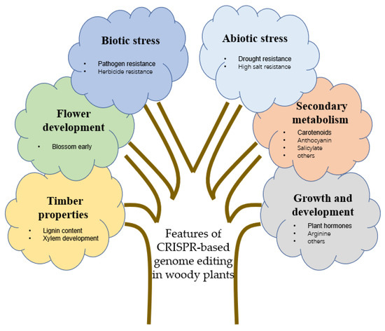Min, T.; Hwarari, D.; Li, D.; Movahedi, A.; Yang, L. CRISPR-Based Genome Editing and Its Applications in Woody Plants. Int. J. Mol. Sci. 2022, 23, 10175. https://doi.org/10.3390/ijms231710175