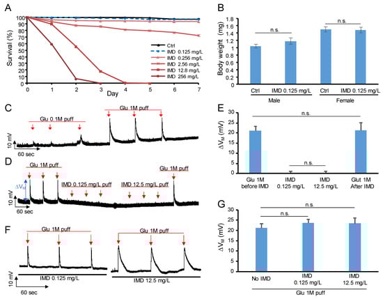 - Young, H.K.; Denecke, S.M.; Robin, C.; Fournier-Level, A. Sublethal larval exposure to imidacloprid impacts adult behaviour in Drosophila melanogaster. J. Evol. Biol. 2020, 33, 151–164. [Google Scholar] [CrossRef]