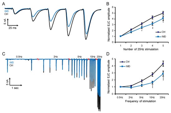 2.3. Chronic IMD Treatment Damps the Glutamatergic Synaptic Plasticity