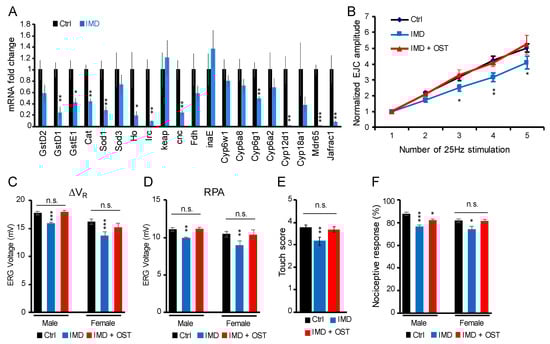 2.5. IMD-Induced Phenotypes Were Rescued by Antioxidant Osthole
