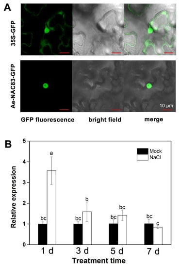 4.3. Subcellular Localization of GFP-AeNAC83 Fusion Protein