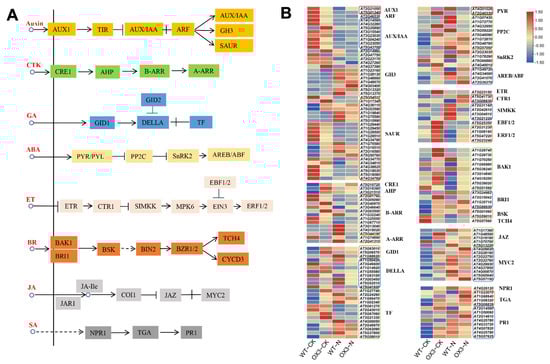 2.6. Identification of DEGs That Participate in Photosynthesis and Hormone Signal Transduction Pathways
