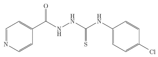 Bhat et al. reported the solubility of an INH analog, N-(4-chlorophenyl)-2-(pyridin-4-ylcarbonyl) hydrazinecarbothioamide (Figure 4) [,]. When comparing the aqueous solubility of INH and the INH analog, it was observed that the INH analog had a solubility times lower than INH; this may be due to solid state properties such as the enthalpy of fusion. Delgado et al. studied the solubility of three structurally related sulfonamides (sulfadiazine (SD), sulfamethazine (SMT), and sulfamerazine (SMT)) in three cosolvent systems (methanol + water; ethanol + water, and 1-propanol + water) [,,,,,]. When comparing the solubility of the three sulfonamides in a solvent, it was possible to establish that the solubility was related to the enthalpy of fusion, thus, SD ( kJ/mol []) was less soluble than SMR ( kJ/mol []) and it in turn was less soluble than SMT () kJ/mol []). On the other hand, when comparing the solubility of INH in PEG 200 and that of the INH analog in PEG 400, the solubility of INH was three times lower than that of the INH analog; in this case there are two possible causes, the first one was described above (properties of the solid state) and the second one is related to the properties of the solvent. In the study of Delgado et al., it could be established that the solubility was related to the solubility parameter of the compounds; the greater the similarity between the solubility parameter of the solute and the solvent, the more favored the solubility of the drug; therefore, when comparing the solubility of the INH analog in PEG 400 and PG, it can be established that the INH analog, possibly presents a solubility parameter closer to PEG 400 (23.10 MPa []) than to PG (30.7 MPa []), since the solubility of the INH analog is higher in PEG 400.