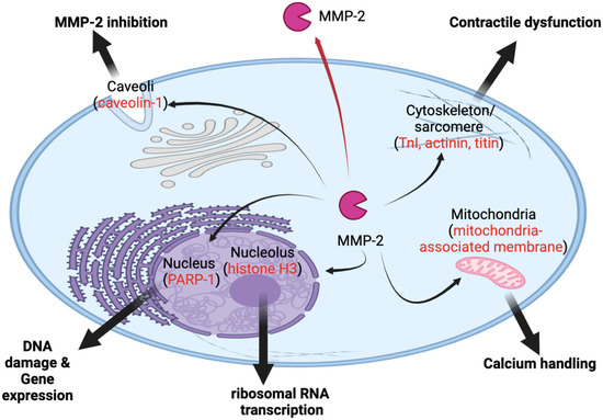 - Kwan, J.A.; Schulze, C.J.; Wang, W.; Leon, H.; Sariahmetoglu, M.; Sung, M.; Sawicka, J.; Sims, D.E.; Sawicki, G.; Schulz, R. Matrix Metalloproteinase-2 (MMP-2) Is Present in the Nucleus of Cardiac Myocytes and Is Capable of Cleaving Poly (ADP-ribose) Polymerase (PARP) in Vitro. FASEB J. 2004, 18, 690–692. [Google Scholar] [CrossRef]