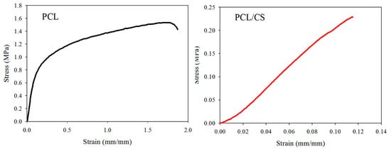 The typical tensile stress–strain curves of PCL and PCL/CS nanofiber membranes.
