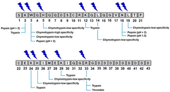 - Böttger, R.; Hoffmann, R.; Knappe, D. Differential stability of therapeutic peptides with different proteolytic cleavage sites in blood, plasma and serum. PLoS ONE 2017, 12, e0178943. [Google Scholar]