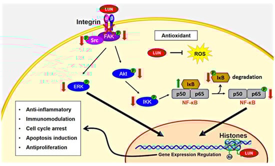 - Dia, V.P.; de Mejia, E.G. Lunasin potentiates the effect of oxaliplatin preventing outgrowth of colon cancer metastasis, binds to α5β1 integrin and suppresses FAK/ERK/NF-κB signaling. Cancer Lett. 2011, 313, 167–180. [Google Scholar] [CrossRef]