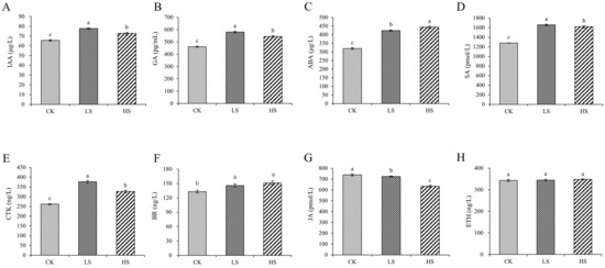 3.1. Effect of Artificial Shading on the Plant Hormonal Regulation of P. koraiensis