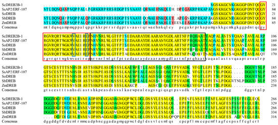 2.1. ScDREB2B-1 Belonged to the A-2 Group of the DREB Transcription Factor Family