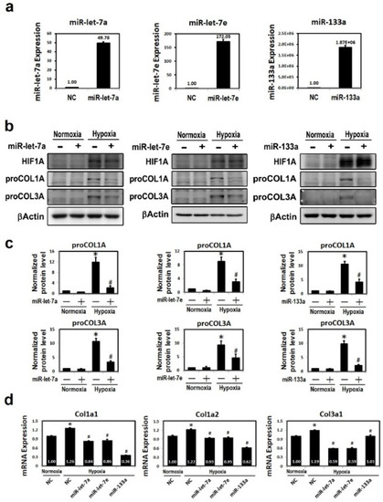 2.5. Delivery of MiR-133a, MiR-Let-7a or MiR-Let-7e Inhibited Hypoxia-Induced Collagen Expression