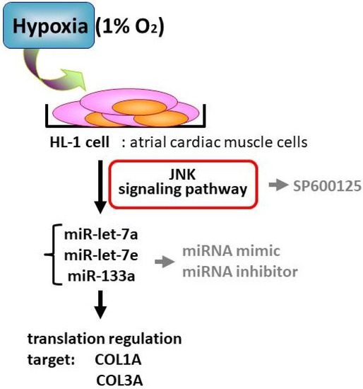 In conclusion, miRNA let-7a, -7e and -133a reduced atrial remodeling and fibrosis via the inhibition of the fibrotic markers COL1A or COL3A and post-transcriptional repression by the JNK pathway under hypoxic stress. This finding may provide new therapeutic strategies and future anti-arrhythmic drug development for atrial fibrillation.