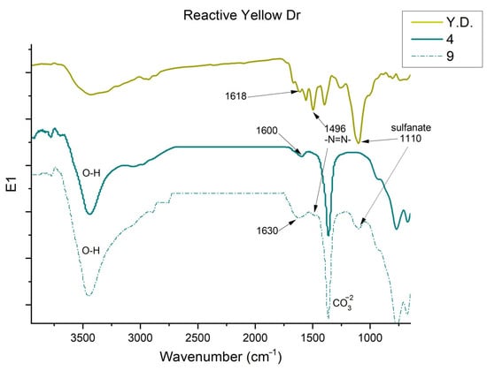 64]. The reactive dye studied has sulfate groups that can be seen at 1110 cm