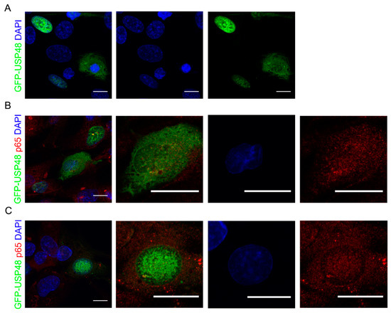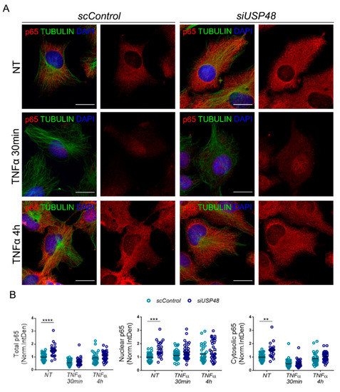 2.3. USP48 Downregulation Increases p65 Nuclear Accumulation