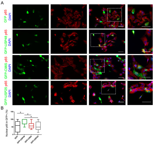 2.1. USP48 Overexpression Promotes p65 Nuclear Localization