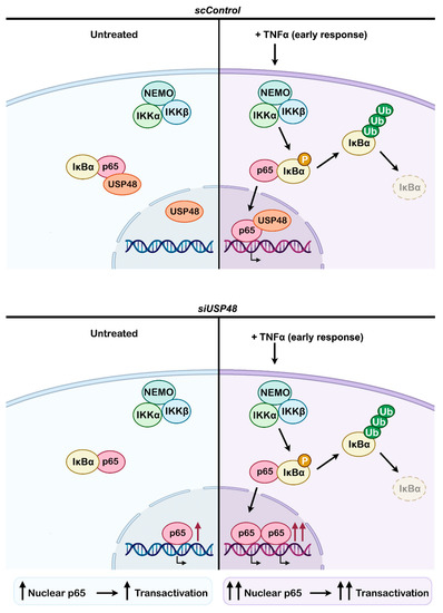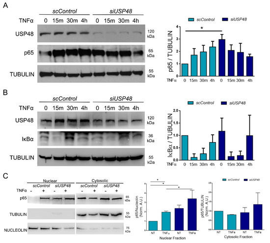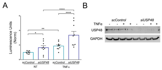 2.4. USP48 Downregulation Enhances TNFα-Induced NF-κB Activity
