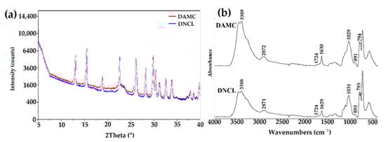 (a) The X-ray diffraction patterns and (b) ATR-FTIR spectra of DNCL and DAMC.