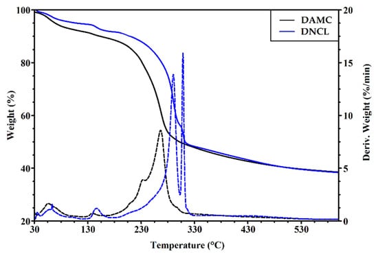 The TGA-DTG curves of DAMC and DNCL.