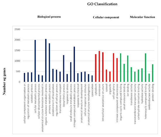 - Götz, S.; Garcia-Gomez, J.M.; Terol, J.; Williams, T.D.; Nagaraj, S.H.; Nueda, M.J.; Robles, M.; Talón, M.; Dopazo, J.; Conesa, A. High-throughput functional annotation and data mining with the Blast2GO suite. Nucleic Acids Res. 2008, 36, 3420–3435. [Google Scholar] [CrossRef]