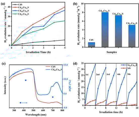 APA StyleZhang, L., Hong, M., Zhang, K., Li, B., Fang, H., Feng, X., & Xiao, X. (2022). Cd0.9Co0.1S Nanorods with an Internal Electric Field and Photothermal Effect Synergistically for Boosting Photocatalytic H2 Evolution. International Journal of Molecular Sciences, 23(17), 9756. https://doi.org/10.3390/ijms23179756